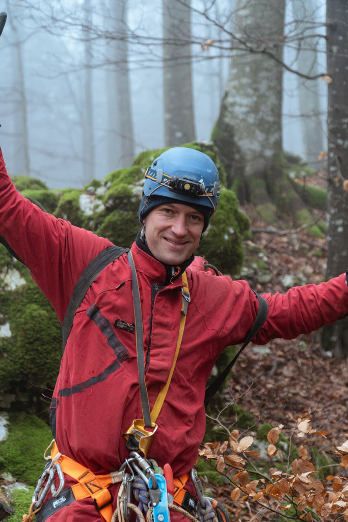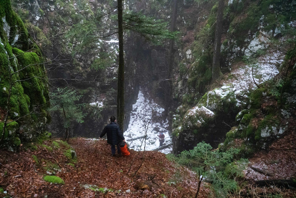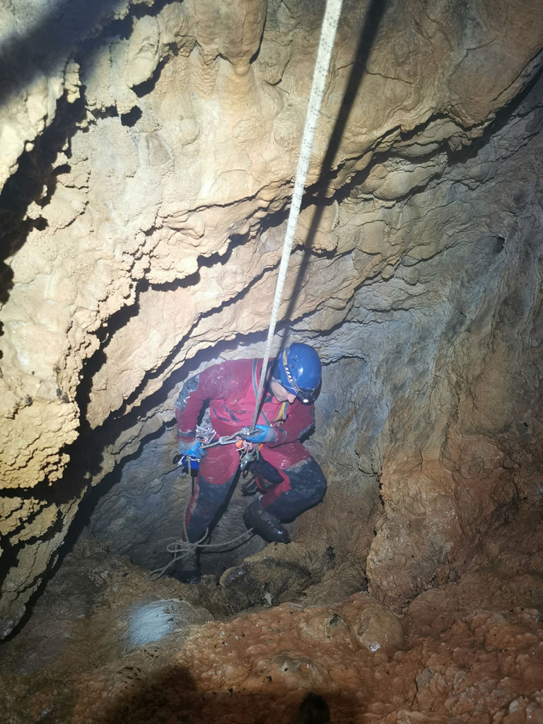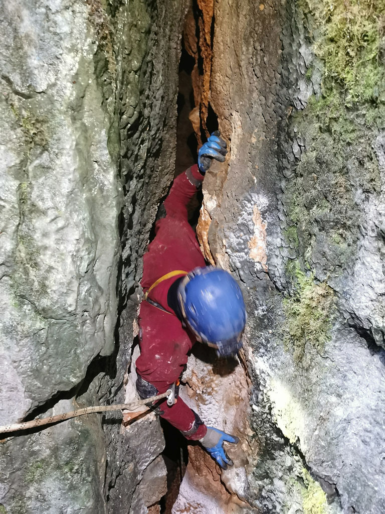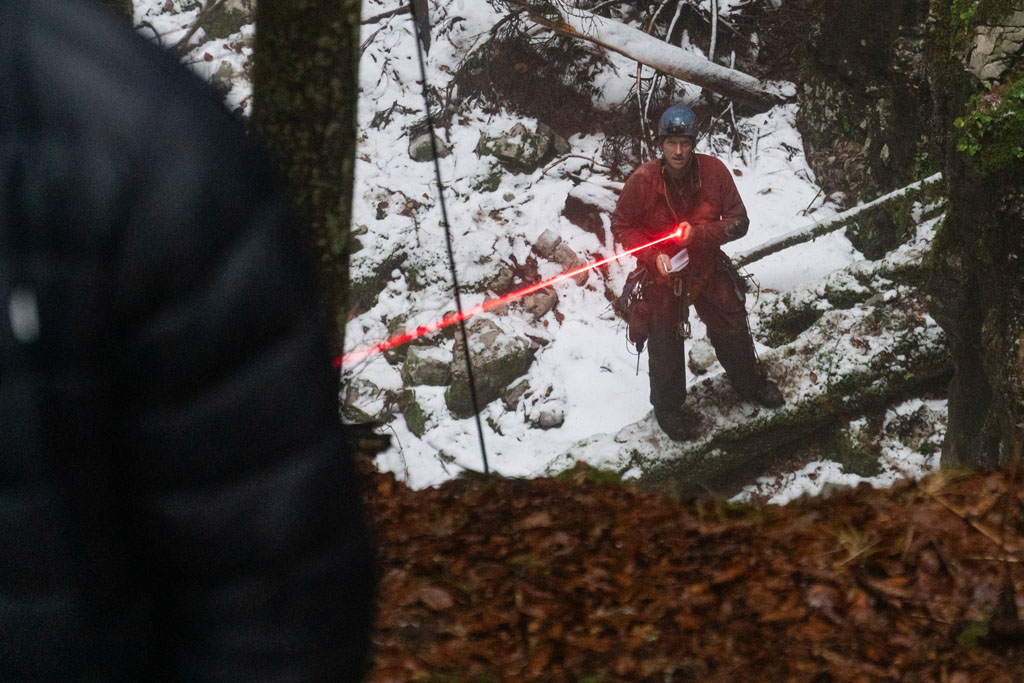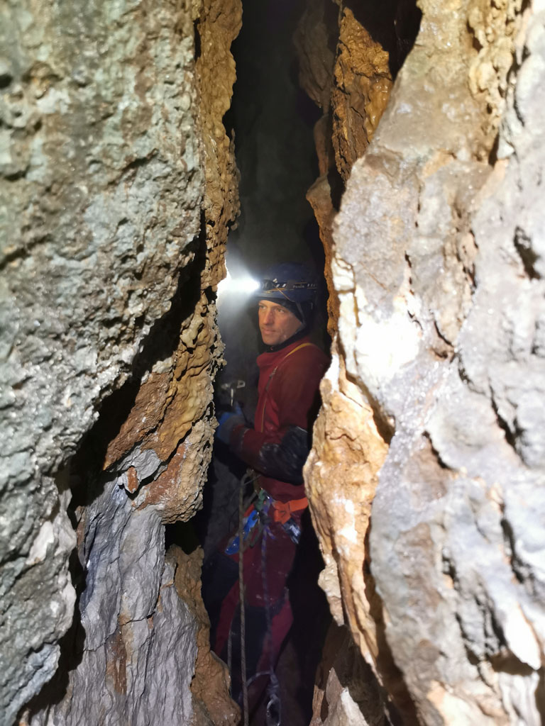 Na državni praznik, ob sedmih zjutraj, v trdi temi in mrazu. Smo trije šli na Čaven. Pot se zdi res dolga in smo jo naredili še daljšo z obvozom do Cola. Ker so bile vse črpalke zaprte smo se čedalje več pogovarjali o porabi bencina, rezervi in kaj narest ko zmanjka. Prvo na vrsti je bilo Jelovo brezno. Za razpoko je kamen padel še 15m. Malo je popustila ožina, malo tudi mi, tako da se je bilo treba uležt v supermena za skozi. Nova mašina, nov sveder in nov fix, ki se je samo vrtel. Ni se pustil zategnit niti odtegnit. Skupaj s ploščico sta ostala v jami. Stopnje je pa 14m, brez nadaljevanja. Pri Lokvah je na vrhu hriba udornica z lepim vhodom v steni, Brezno Veliki Češevnik. Prvič je zmanjkalo vrvi pred nadaljevanjem s kratko stopnjo na globini 80m. Potrudili smo se lepo opremit, notri je šel tudi Tobija. Kratka stopnja ima na dnu ožino iz katere dobro piha, izgleda pa dolga. Na drugi strani hriba smo pregledali novo vodoravno jamo, veliko, vendar precej porušeno. Za kosilo je Miha prismodil fižol. Nadaljevali smo do Snežne jame, spet zaskrbljeni zaradi bencina. Ob poti zmerimo še eno novo razpoko. Tudi Snežna jama je videza udornice. Ob steni je odprto 10m globoko brezno z ostanki lesenih lojter, na drugi strani pa v zamašku med vejami majhen prehod s prepihom. Spodaj se odpre rov preseka 2x2m. Bele stene in kapniki. Močan odmev je zaradi širokega brezna, ki zija ob tem rovu. Treba je bilo jit nazaj po novo vrv. Se pa zapre in konča. Potem smo našli odprto črpalko in šli domov.