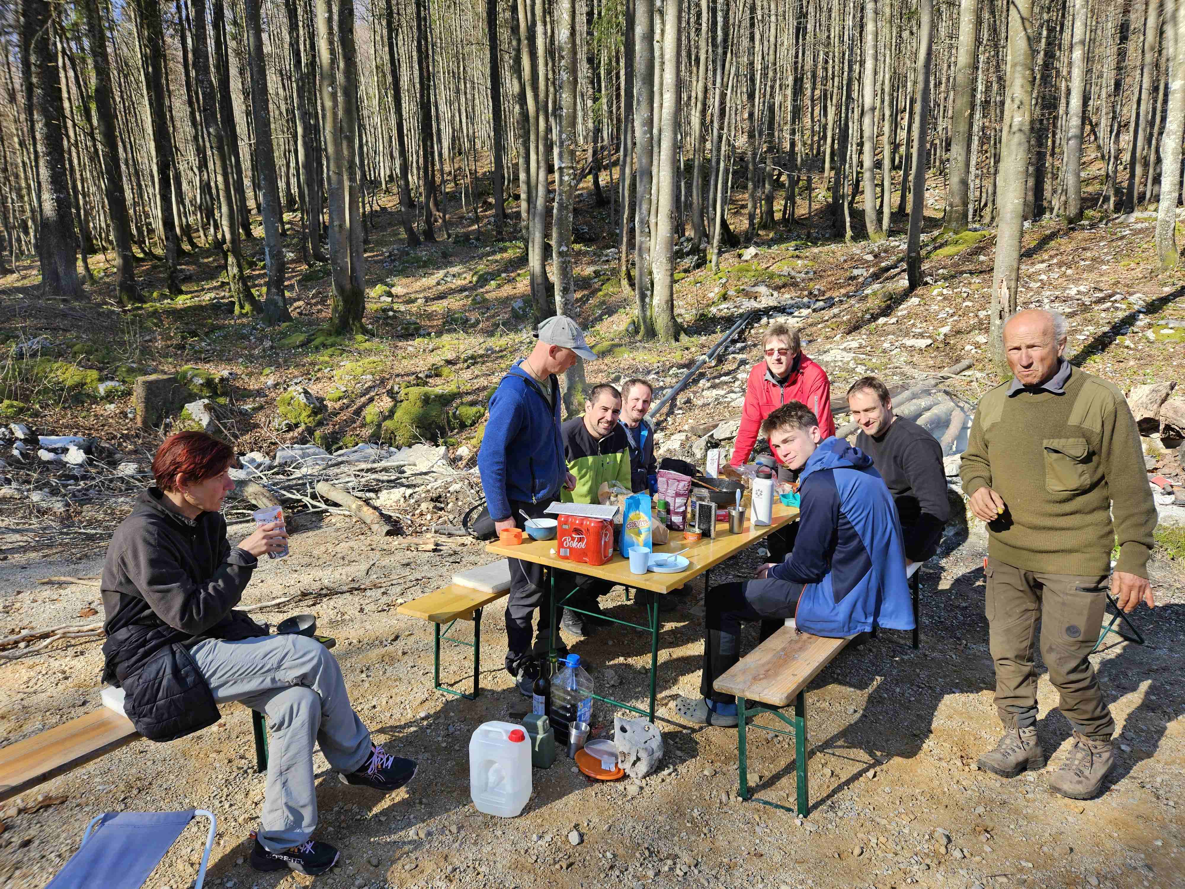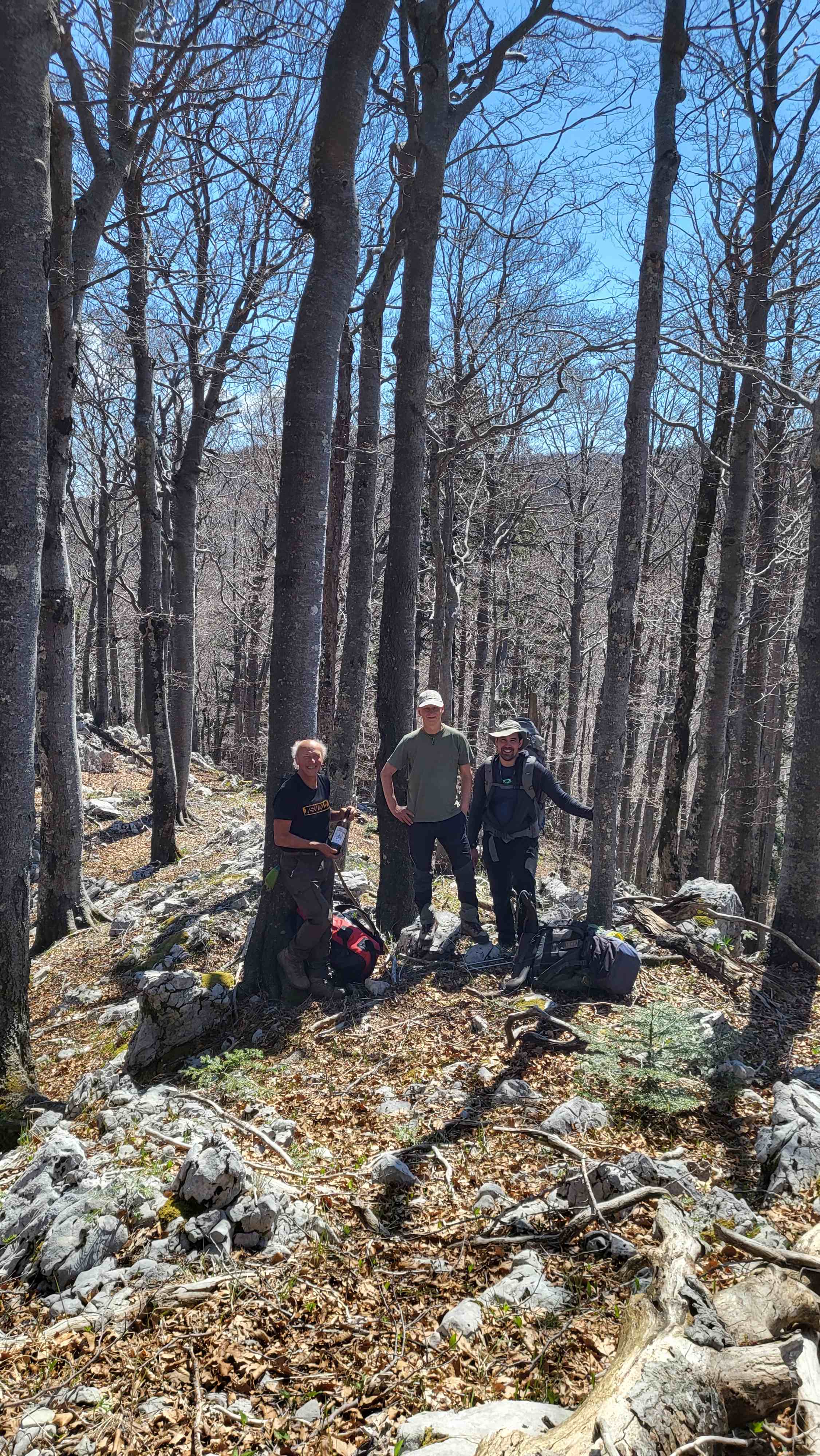 Lani je bilo snegom za prvomajski tabor kar nekaj sitnosti. Kar smejalo se nam je letos. Vreme za kratke rokave, brez sapice, opečeni obrazi, dobra volja je najbolja. Prvi dan so šli naredit prečenje enega jaška v Arganovem peklu, druga ekipa pa po čurkah. Ena od teh ima še prepih in nadaljevanje če se bo kopalo. Na vhodu v previsu ima ptič gnezdo s tremi mladiči. So že veliki, kmalu se bodo učili letenja. Nad breznom. Arganov pekel se konča s prostorno 30m globoko stopnjo in ravnim dnom. Ponoči je precej hrane odnesla udomačena lisica. Se skoraj pusti božat. Drugi dan se je šlo v eno bolj globoko in druga in tretja ekipa naokrog. Ta globoka je trd zalogaj, saj se večni led pospešeno tali, je za razmislit. Druga ekipa je imela celodenevni treking s panoramo Reškega zaliva in dvakrat srečo z novo jamo. Tretja ekipa je na široko prečesala nek teren. Z bolj malo zadovoljstva. Čisto na koncu pa najdejo spodmol, kjer v vogalu kamen zažvižga in pade vsaj 50m. Tretji dan gremo to pogledat, gre za globino 98m enostavnega jaška. V nekem drugem breznu pa je na 120m zmanjkalo štrika in gre še naprej. Počasi je bilo dovolj. Ob poti domov, v “gozdu daril” se je pogledalo še nekaj manjših jamic.